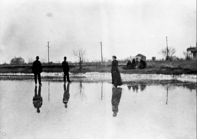 That same day, in another part of San Antonio, Adolph Wagner, Ernst Steves and Mrs. Aaron Pancost were photographed by Ernst F. Schuchard skating on West End Lake…now known as Woodlawn Lake