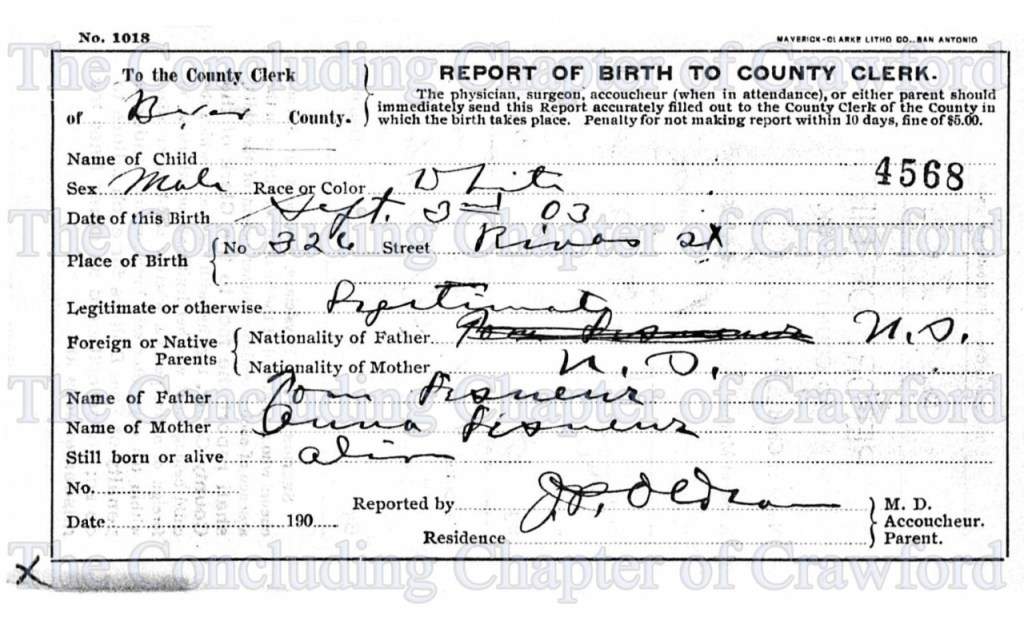 There is no known official Birth Certificate for Joan Crawford, however we do know that she was born in San Antonio with the name of Lucille Fay LeSueur. Also, there has always been differing opinions as to her birth year. Throughout her life, she maintained she was born on March 23rd 1908, and this was the date given when she applied for a Social Security card in California.