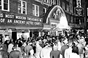 The opening night on June 4th 1926 was an extravaganza. 6,000 people turned up to witness San Antonio’s new theater and architectural marvel, however, only 3,000 got inside, with thousands filling St Mary’s Street outside. That night, a 26 piece orchestra, 16 “Aztec” chorus girls, a movie, and a stage drama called “The Court of Montezuma” entertained those lucky ones with tickets.