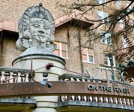 While taking a Go Rio Riverwalk cruise, look for the Aztec face high above the river, to remind everyone of the glory days of this iconic San Antonio landmark.