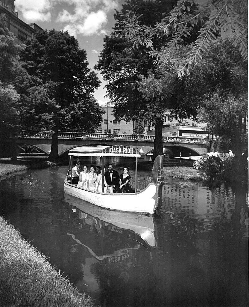 There were other failures along the way. One boat that featured elaborate swan heads, was decapitated under Rosita’s Bridge, and crudely-fashioned paddle boats ended up soaking the passengers. There were also gondola-styled craft, complete with a gondolier using a long pole to propel the boat along the river. This was once the dream of Architect Robert Hugman in his original concept for the Riverwalk.
