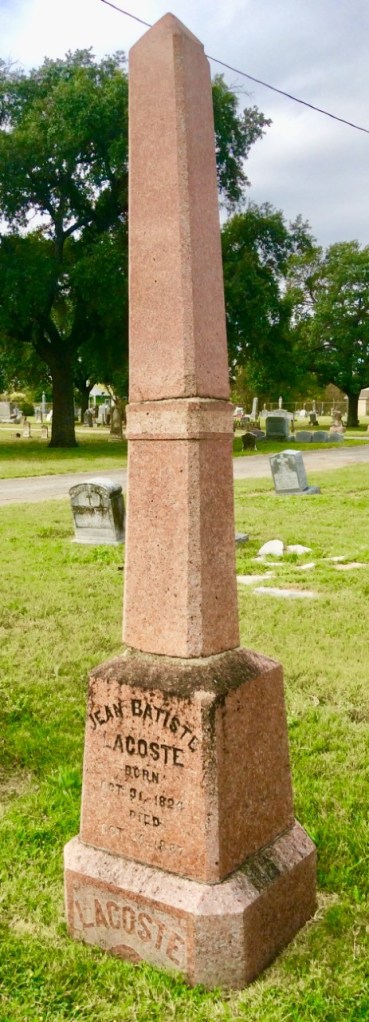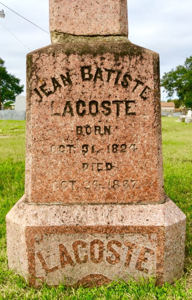 Jean Batiste LaCoste died in San Antonio on October 24th 1887, and is buried in the San Fernando Catholic Cemetery.