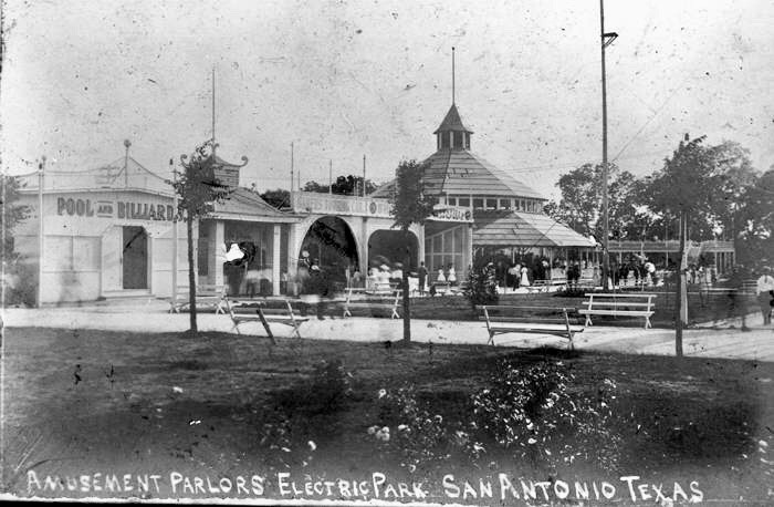 “Electric Park” was an amusement and baseball park on what is now the VIA Maintenance facilities on the corner of W. Myrtle and N. Flores Streets, just near San Pedro Park.