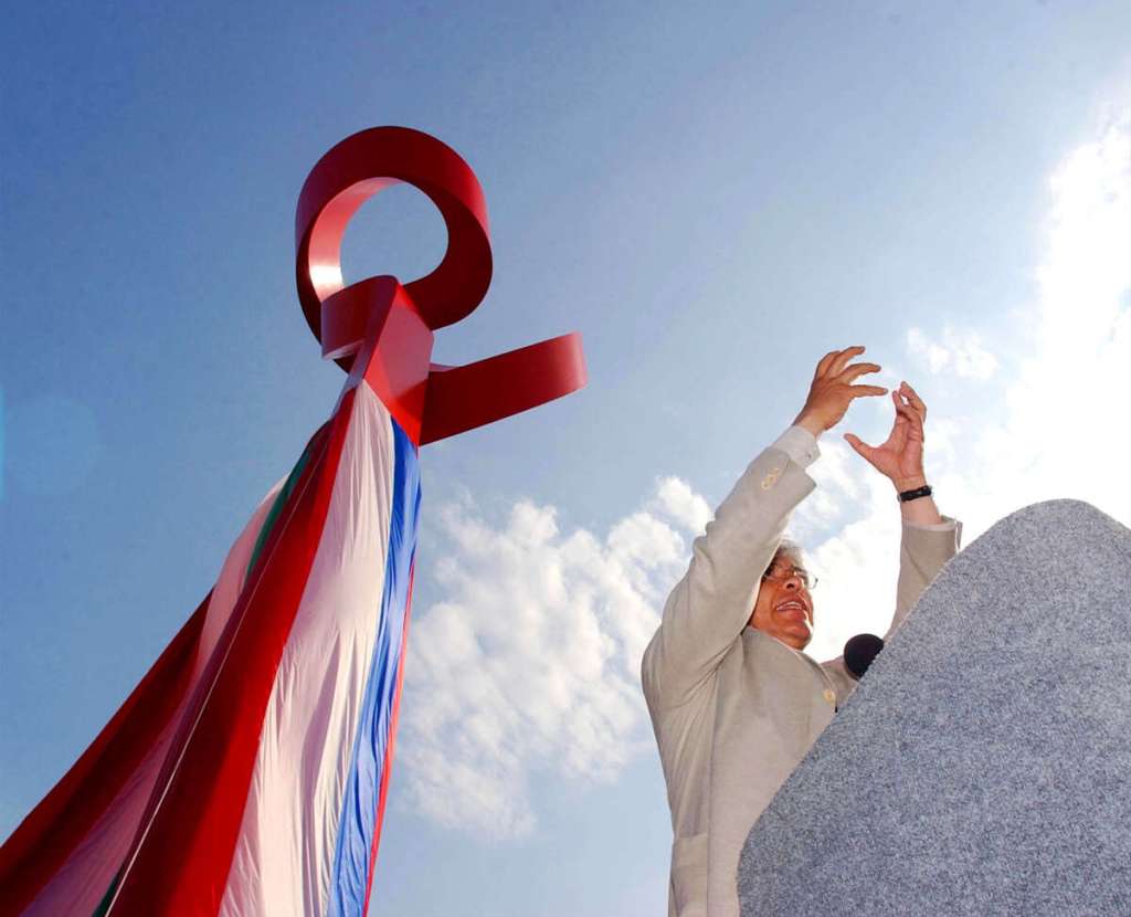 An an unveiling ceremony attended by Sebastian, Mayor Ed Garza and the then Secretary of Foreign Affairs for Mexico, Jorge Castaneda Gutman, the red-orange sculpture became a part of the city landscape.
