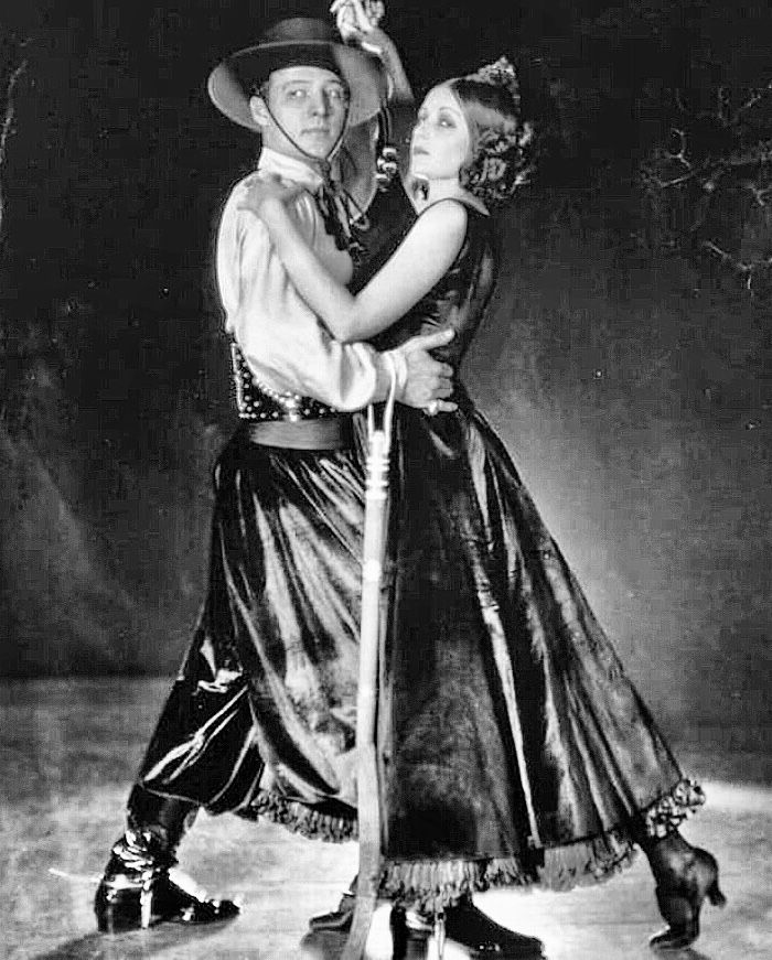 Valentino had previously earned a living as a “taxi dancer” ( a dancer paid to be a partner ) and displayed his talents in his films, including the tango scene in “Four Horsemen of the Apocalypse” In fact, he had also earned the nickname “Tango Legs” at this time.