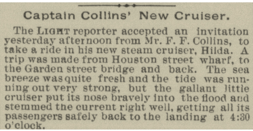 Captain Finis Foster Collins named his steamboat the “Hilda” after his wife.