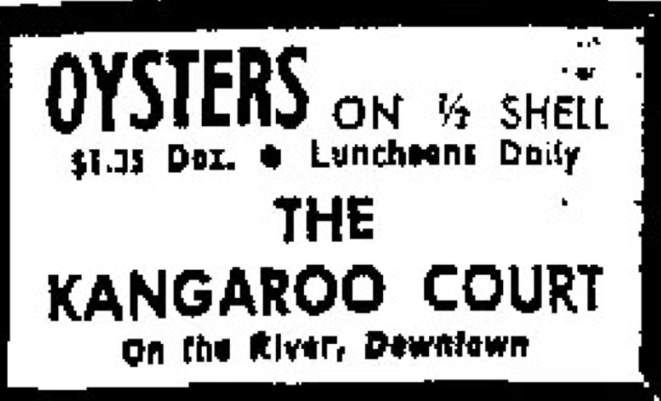 As Mr B recalls, Hap ( short for “Happy” a nickname he earned as a youngster ) was a little apprehensive because he felt that nobody was going to visit the Riverwalk in those days. Hap told Bob Buchanan that he actually had preliminary plans for a development there, but couldn’t get financing for the project. Bob mentioned some inherited Texaco shares, and the next day they formed a partnership for their venture. Such were the beginnings of the “Kangaroo Court.”