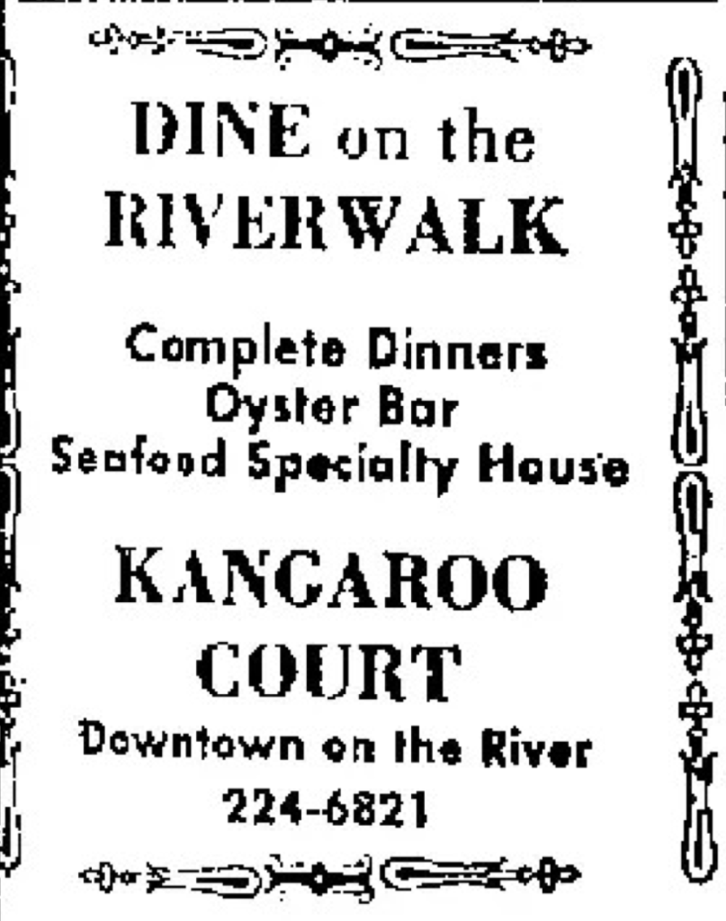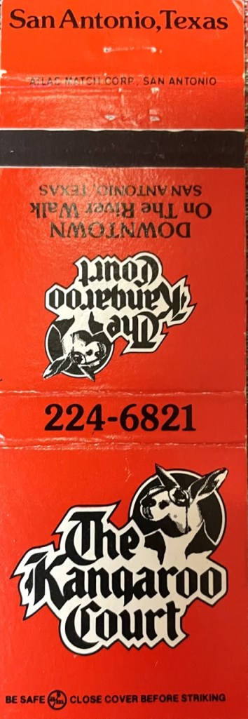 Today we remember the San Antonio Riverwalk restaurant the Kangaroo Court, which opened on August 8th, 1968….55 years ago.