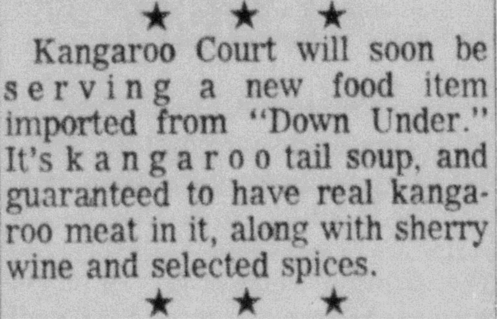 …..and the Kangaroo Court was always looking at new ways to attract hungry patrons.