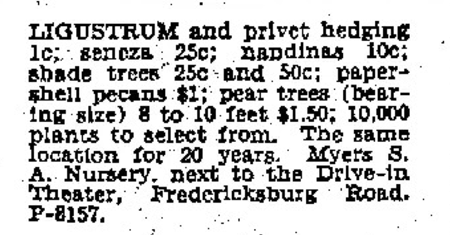 Leaving the management of entertainers behind him, he instead turned his attention to managing a nursery. It was located on Fredericksburg Rd.