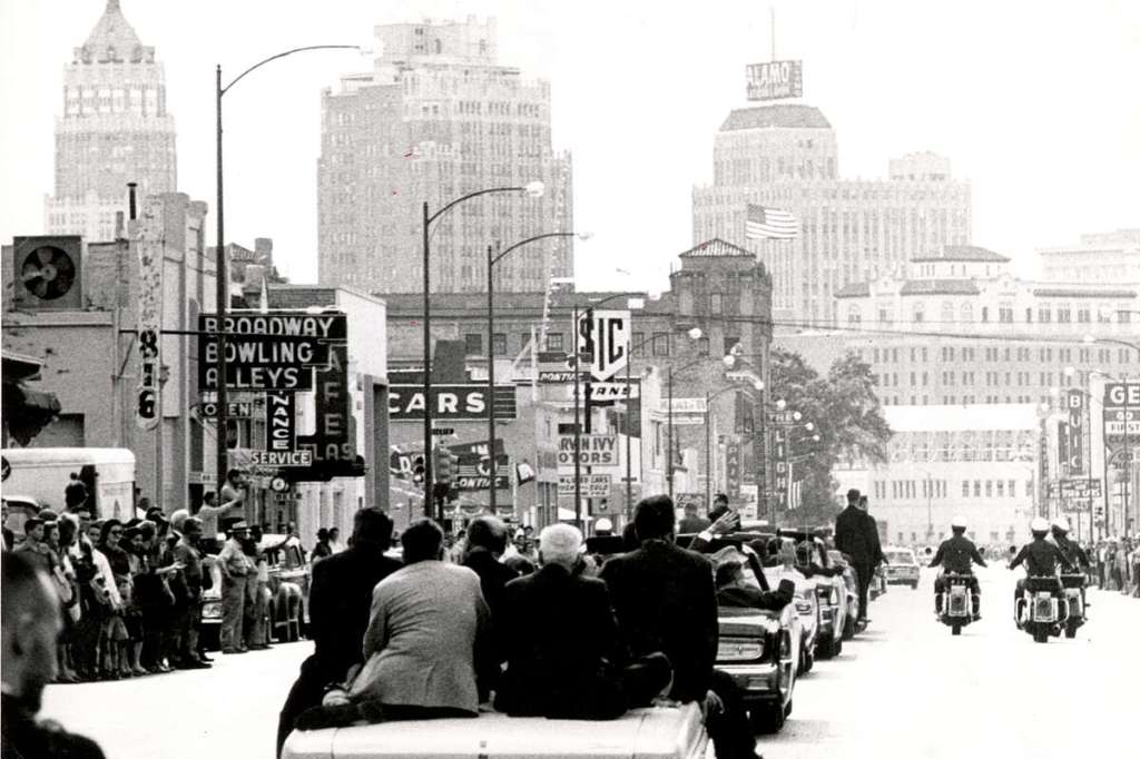 The motorcade route began at the airport, and proceeded along Loop 410 to Broadway, then it was down Houston Street, turning onto St. Mary’s Street and Roosevelt, before heading to Brooks AFB.