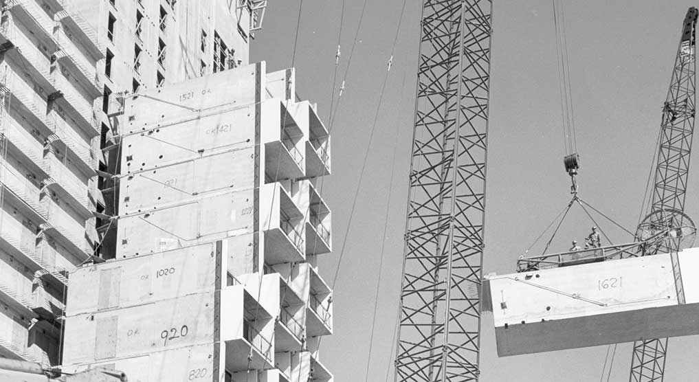 H. B. Zachry and his wife Mollie, created history on November 3rd 1967, when they became the first people to “ride” their room into a hotel, as room #522 was lifted into place by a massive, specially-built crane. The crews became so proficient at the room lifting, that a record was set by “stacking” 35 rooms in a single day.