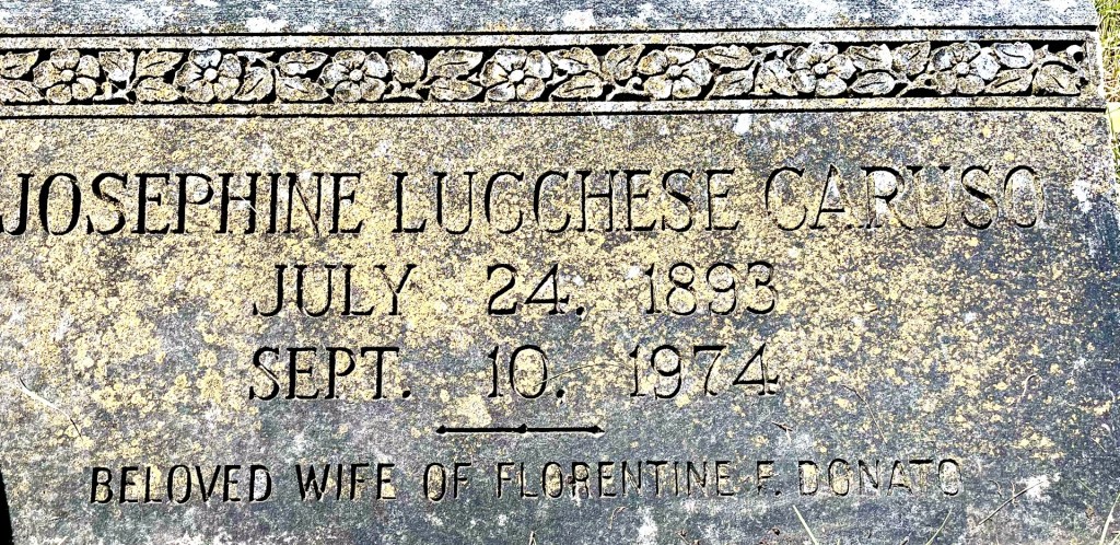 Her gravestone is inscribed ” BELOVED WIFE OF FLORENTINE DONATO “