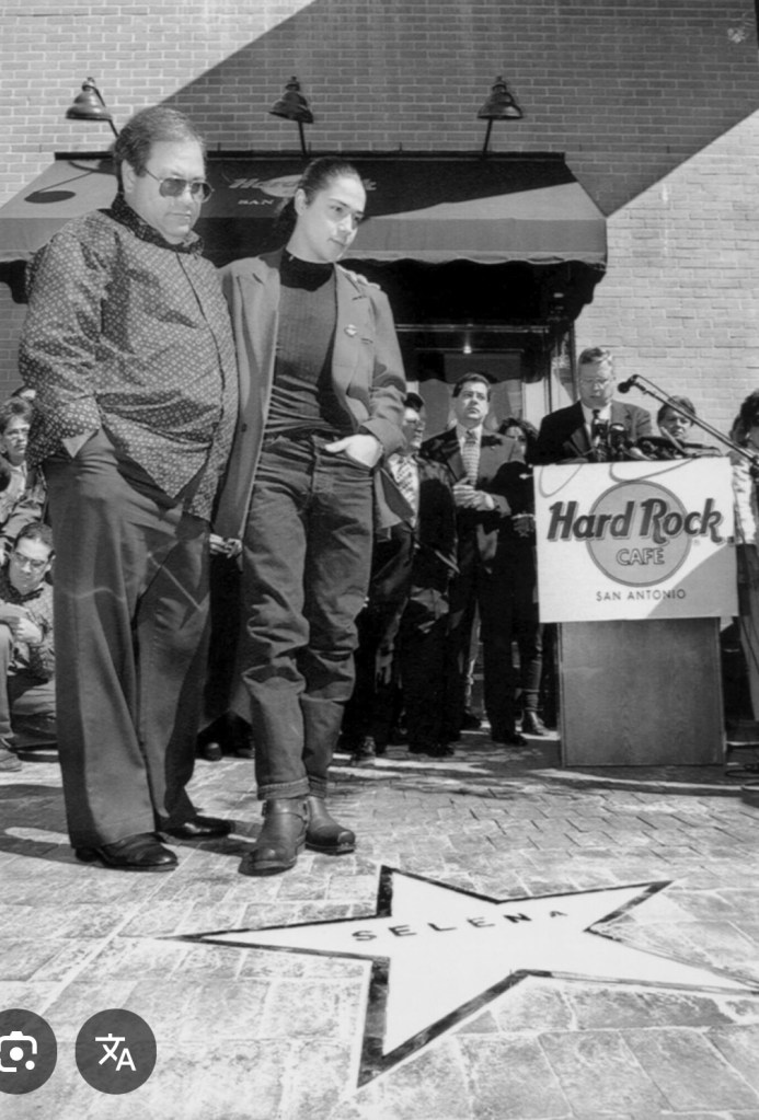 A few months later, and following her tragic murder, Selena’s father, Abraham, and her husband Chris Perez, revisited the establishment for the unveiling of a star on the sidewalk in front of the restaurant, as a permanent reminder of her.